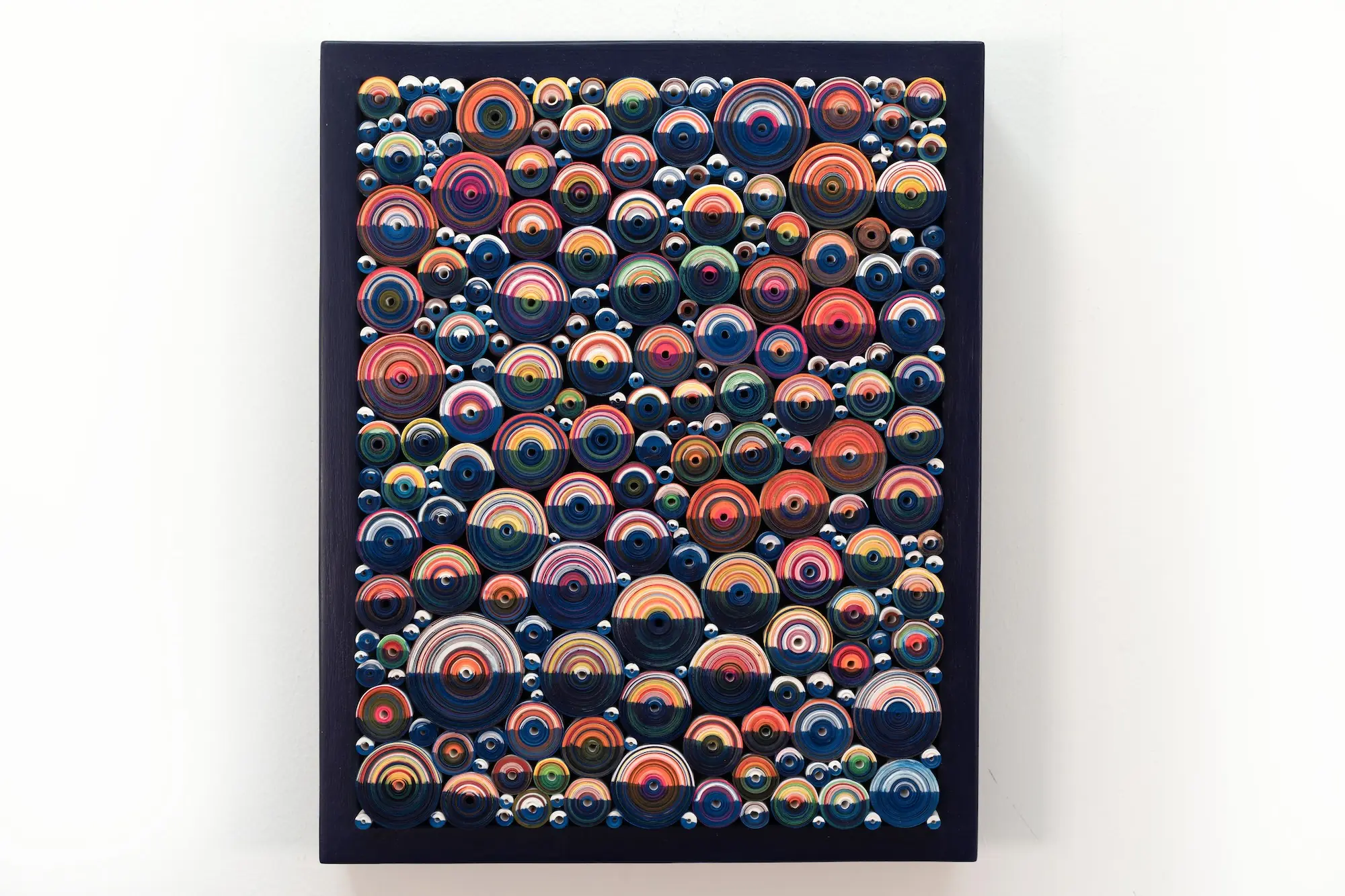 Hadieh Shafie uses ink, paint and paper as material for works that abstract text into form, evoking different optical perspectives; her reliefs comprise circular or cone-shaped scrolls inscribed with Farsi poetry and her own writing in acts of concealment, fragmentation and distortion. Her visual language, a form of mark-making, is multi-layered and arises from a profound understanding of words as an energetic charge, colour as emotion, and repetition as a kind of spiritual practice. To 21 April.