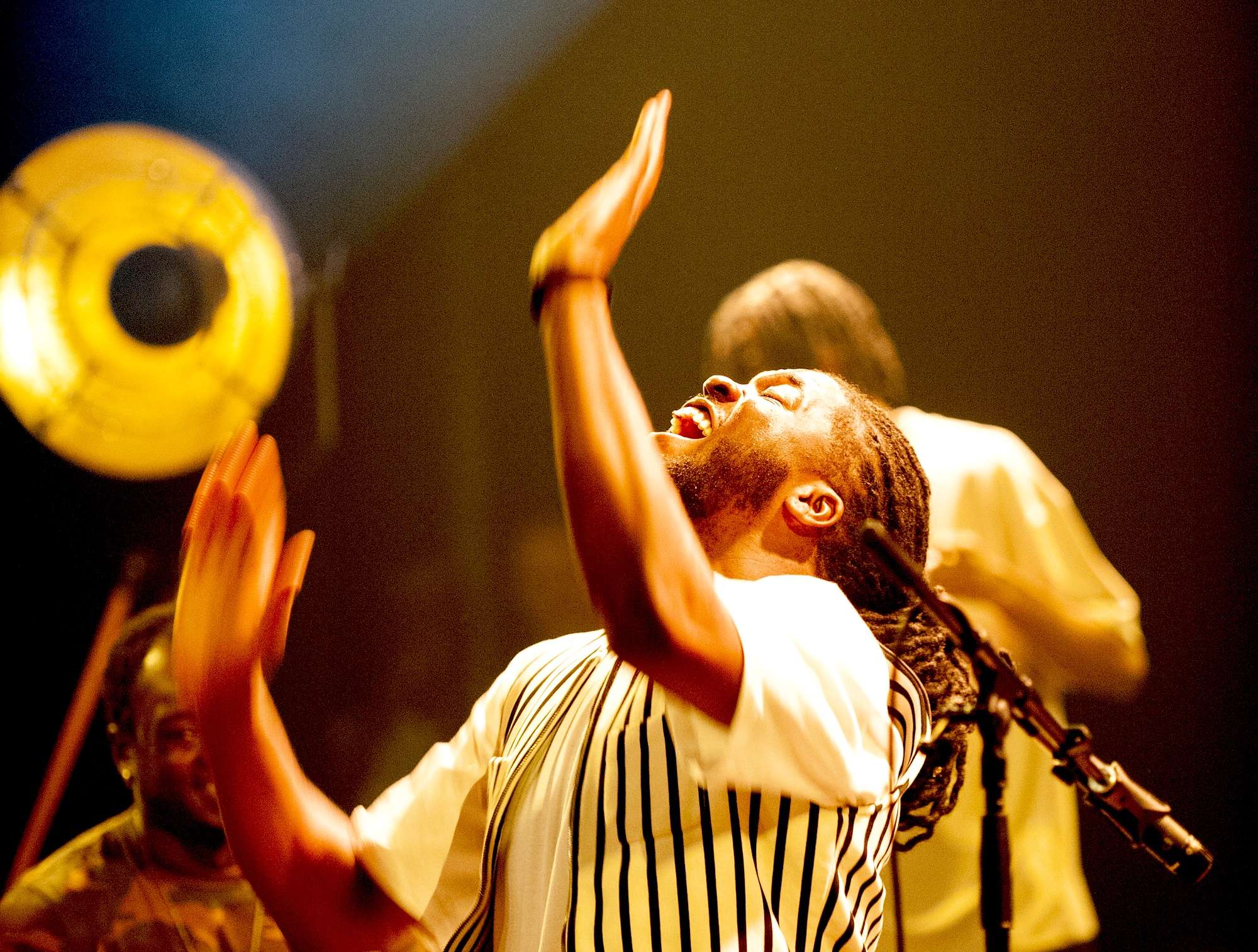 Yahael Camara Onono is accompanied on this occasion by Godwin Sonzi (guitar), Jali Bakary Konteh (kora), Jonathan Moko (bass), Aboubacar Konaté (dounoun), and Aida Diop (dance).